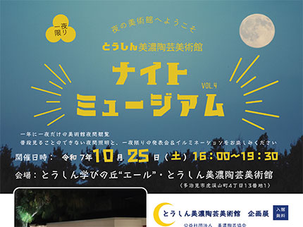 【たじみ子どもの権利の日協賛事業】「救え!タジミー王国」 2025年10月18日(土) イベント 【多治見ろうざん 講演会】唐松岳頂上山荘 支配人 瀧根正幹氏 2025年10月18日(土) イベント 『ナイトミュージアムVOL.4』【とうしん美濃陶芸美術館】 2025年10月17日(金) イベント もっと見る