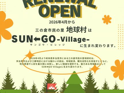 【多治見市】4月から地球村はSUN←GO-Village-(サンゴウ・ビレッジ)に生まれ変わります