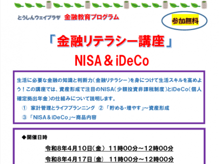 【とうしんウェイプラザ】金融教育プログラム「金融リテラシー講座」NISA & iDeCo