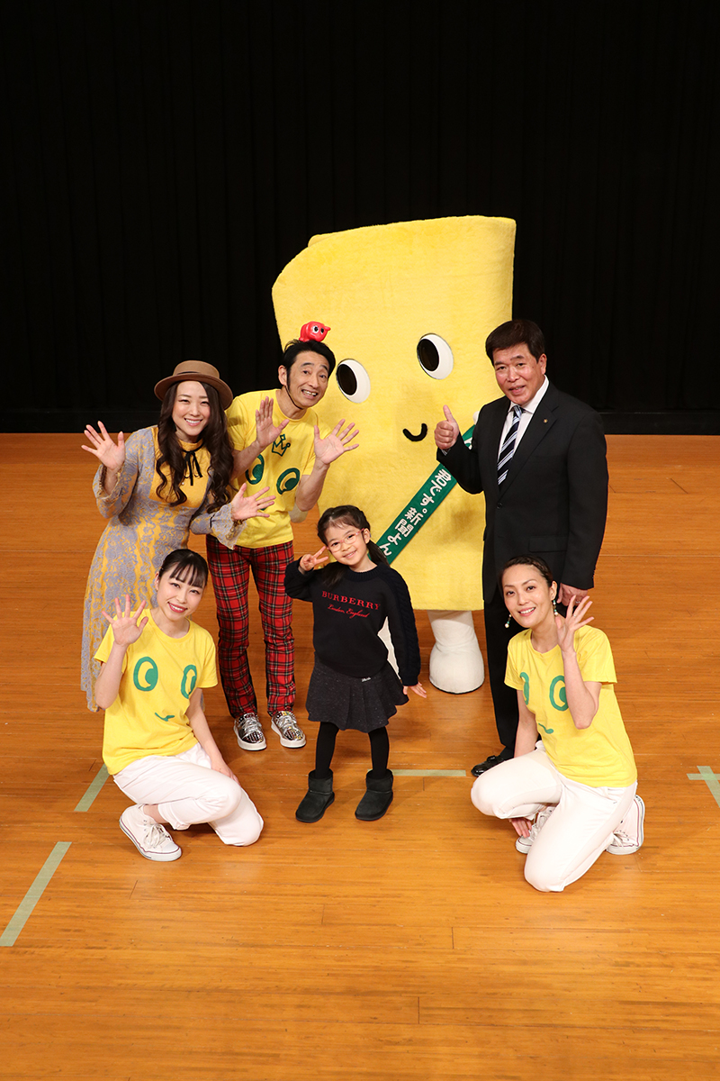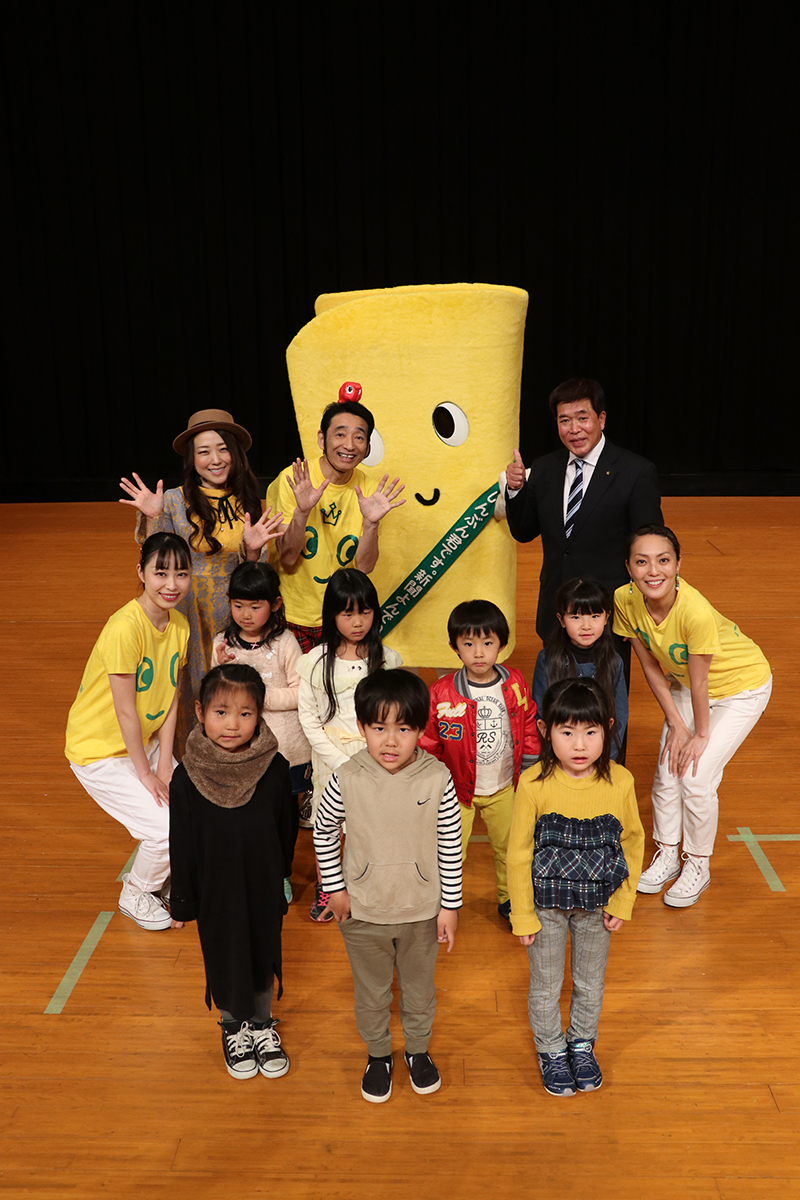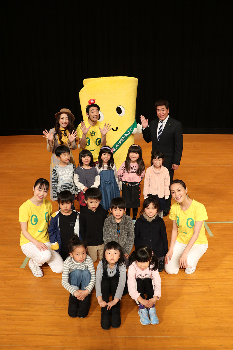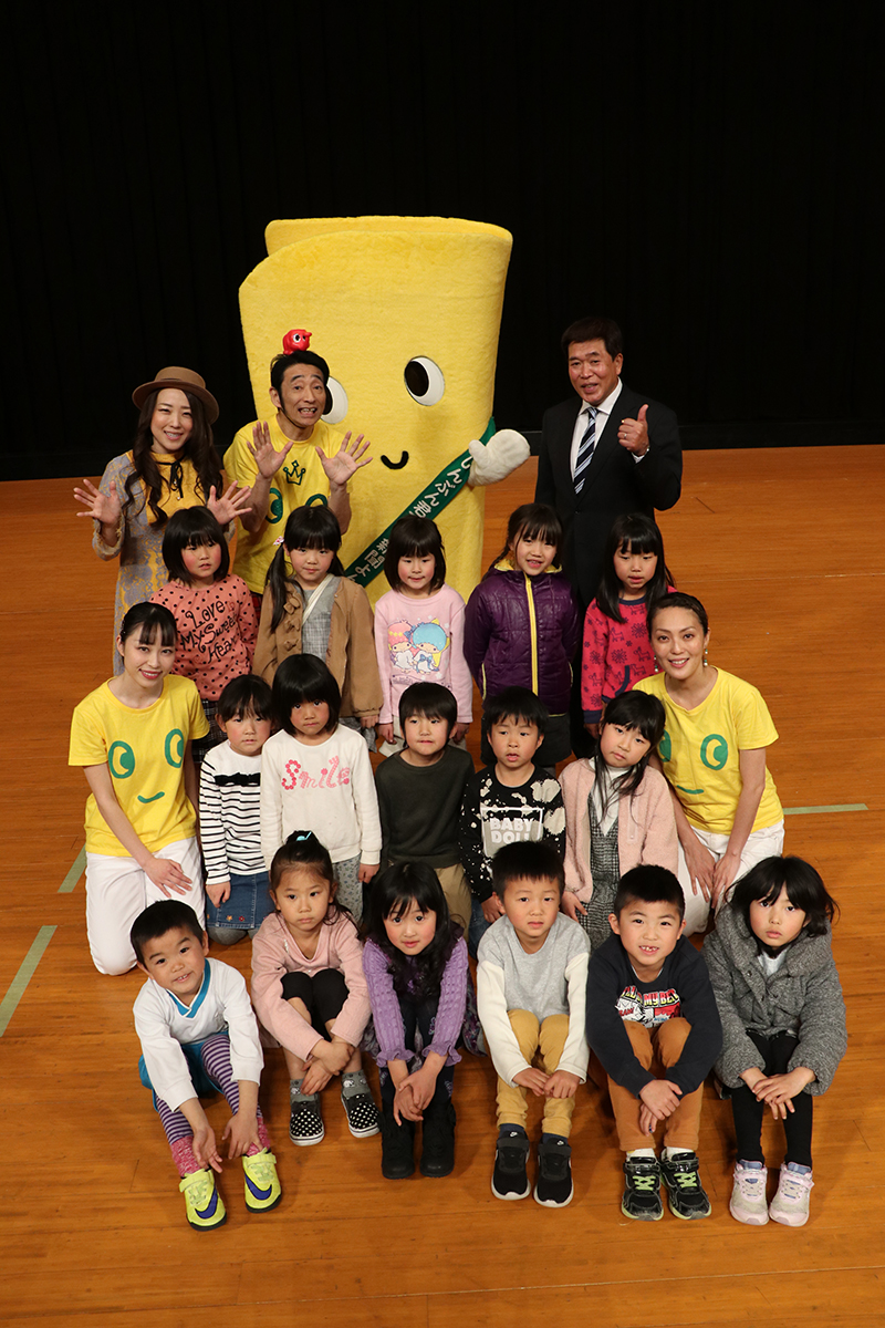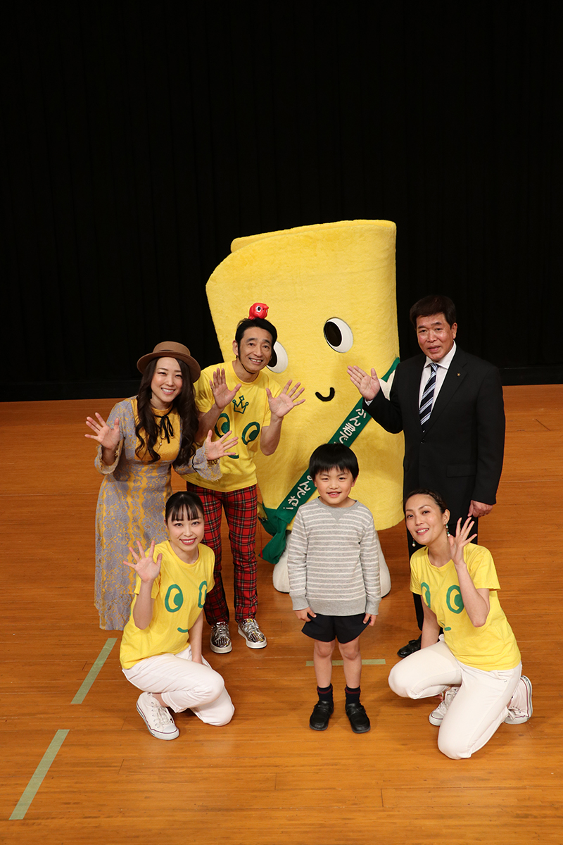 最後にはラッキィ池田さん、多治見市長、佐藤梓さんとペーパーガールズ、しんぶんくんと共に記念撮影。撮影した写真は『思い出新聞』となって、参加した子どもたちに名前入りで配布され、小学校入学前の良い思い出になるでしょう。