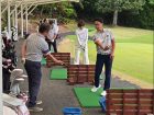 中に入ると左右に空間が分かれており、どちらにもテーブル席が並んでいます。店内には4人掛けのテーブル席が6つ、大きめの円卓が1つ、カウンター席が3つありました。天井が吹き抜けになっているので開放感があり、店内の壁には、風景画と共にゴルフクラブも飾ってありました。