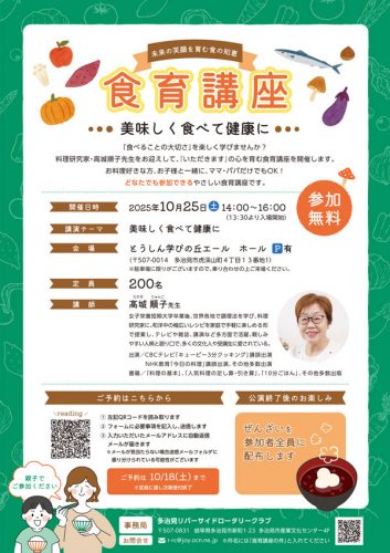 料理研究家・高城順子先生をお迎えして、「いただきます」の心を育む食育講座を開催します。
