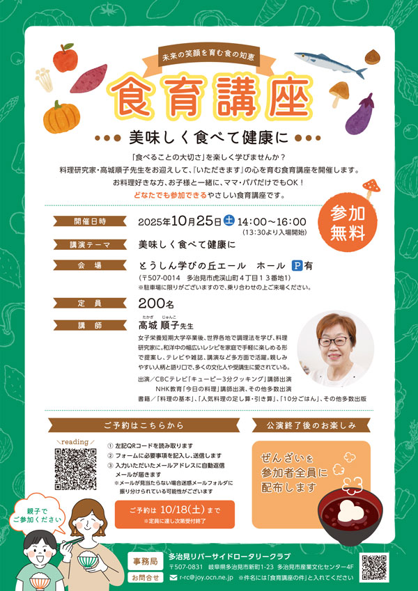 食育講座『美味しく食べて健康に』【多治見リバーサイドロータリークラブ】