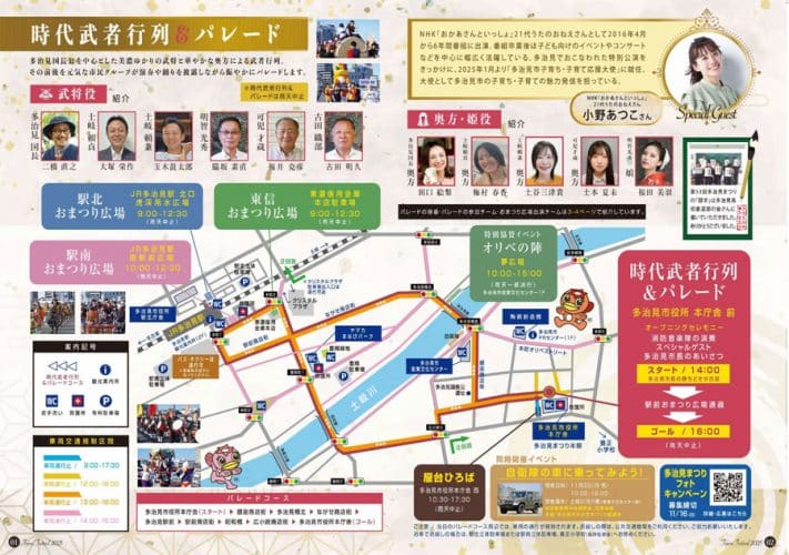 多治見国長公を中心とした美濃ゆかりの武将と、華やかな奥方や娘役、市民グループ24団体がパレードに参加予定。