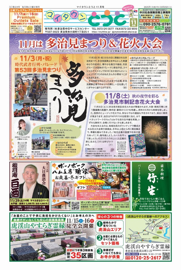 【1面】11月に開催される「多治見まつり」と「花火大会」。