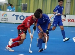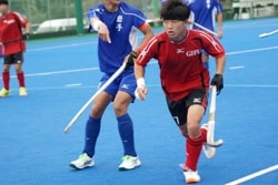 「初戦で、8人を抜いてシュートを決めれたことが一番良かった」。が、試合の終盤にボールとスティックが右手小指にあたり3針縫う事態に。2日後の2戦目にはテーピングを巻き試合に挑みました。「ホッケーにけがはつきもの。試合中はアドレナリンが出るので痛みも忘れます」と犬飼さんは爽やかに話します。