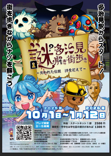 ボードゲームフェスタまいたーん!が主催する「多治見謎解き街歩き〜失われた伝説 時を超えて〜」が開催中。街歩きをしながら隠された謎を解き明かす体験型のゲームです。親子や友達と一緒に冒険に出かけましょう。