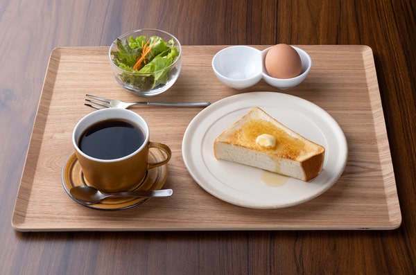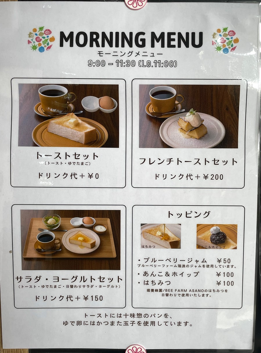 モーニングの卵はかつまたたまごさん、オプションのハチミツは堀養蜂場さんとBEE FARM ASANOさんとの日替わりで。