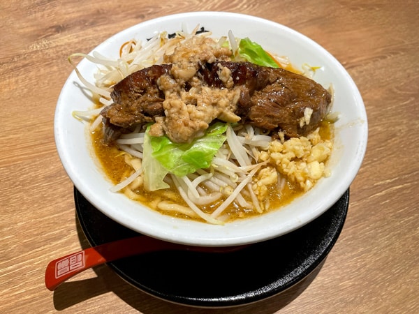 ゑびすの二郎系ラーメンの「味噌二郎」(1220円)は脂増し、野菜増しが無料で。