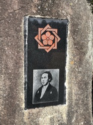 鳥居横の石には坂本龍馬の姿も