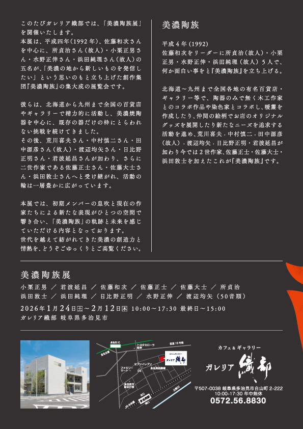 このたびガレリア織部では、「美濃陶族展」を開催いたします。