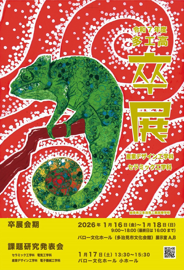 産業デザイン工学科・セラミック工学科の卒展と、同2科と電気工学科・電子機械工学科の課題研究発表会が開催されます。