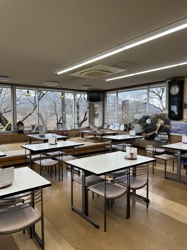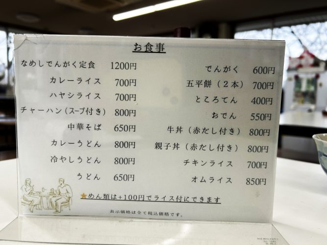お腹が減ったらトイレも完備の見晴茶屋の食堂へ。でんがくやカレーライス、親子丼と心も体も温まるメニューが揃います。