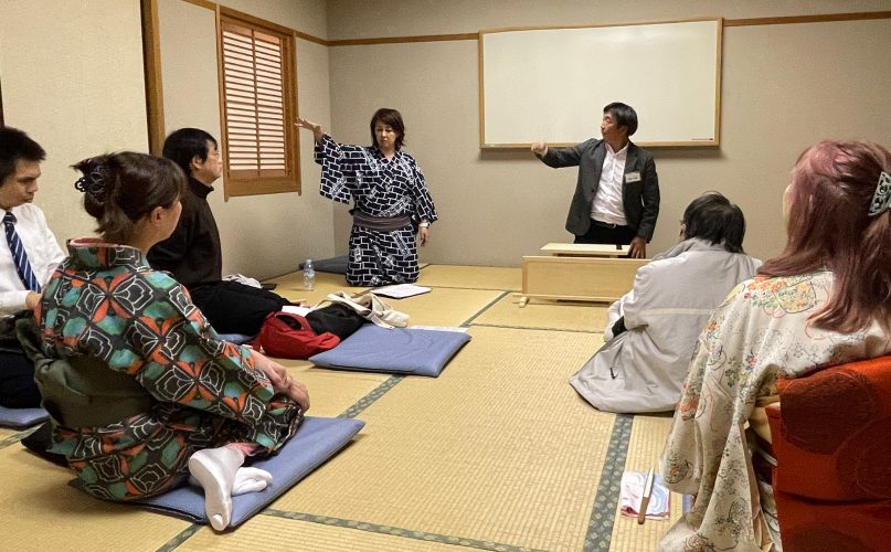 上方受講者の齋藤圭介さん(45・池田町)は「娘に(上方落語を題材とした)絵本を上手に読んであげたかったから」、江戸受講者の杉田幸博さん(西坂町)は「どうしても二枚目を気取ってしまい、三枚目になりきれなかったのを克服したかった」と、参加理由もユニークでさまざま。中にはこの講座に興味を持ち郡上市から参加する受講者も。
