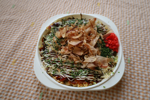 生地の上にたっぷりキャベツを乗せ、具材を焼いていきます。