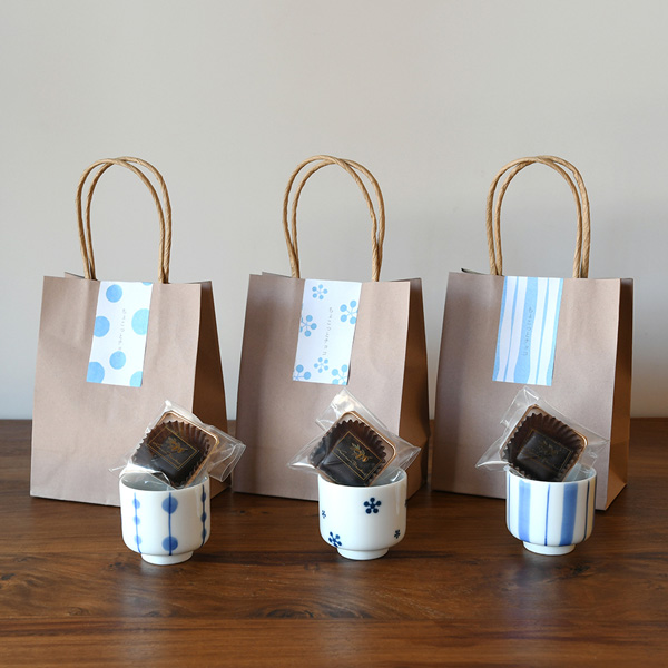 3種類から選べるお猪口に、チョコをセットして買うことができます。