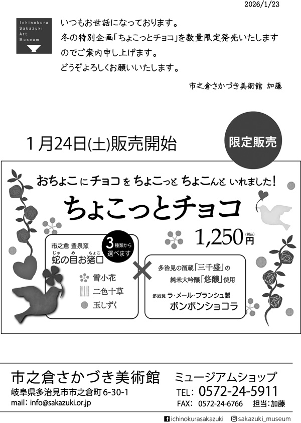 【多治見 市之倉さかづき美術館】ちょこっとチョコ2026発売!