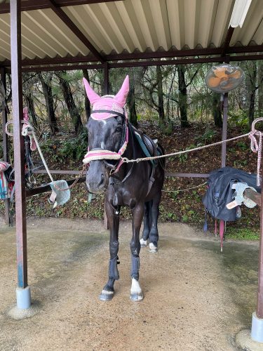 乗馬体験は屋根付きなので雨天時も安心