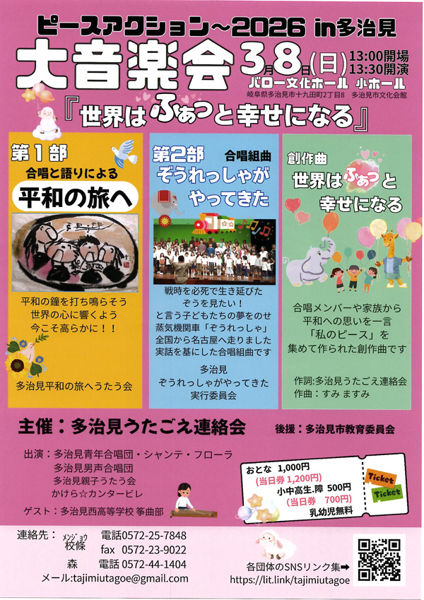 ピースアクション2026 in多治見 大音楽会「世界はふぁっと幸せになる」