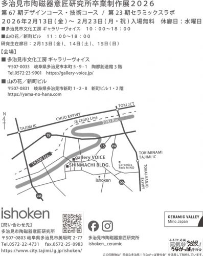 多治見市陶磁器意匠研究所卒業制作展2026【多治見市文化工房ギャラリーヴォイス】【山の花/新町ビル】