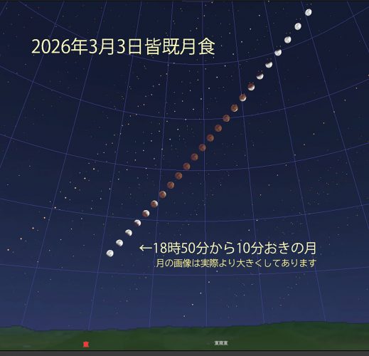 【星空観測】2026年3月3日(火)は皆既月食