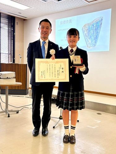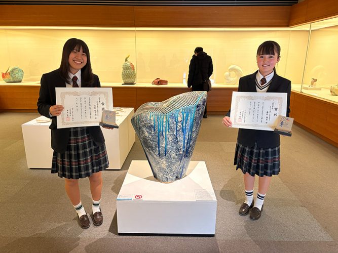 授賞式には、嘉数さんが「戦友であり親友」と話す同校の高良百々乃さん(2年)の姿も。高良さんも、昨年に引き続き、2年連続で優秀賞に選ばれた実力者です。「お互い、自分にない作風を持っていて尊敬している」と語る2人。ライバルでありながら支え合ってきた関係が、互いの成長を確かなものにしていました。美濃焼ミュージアムでは入賞・入選作品展を開催中です。