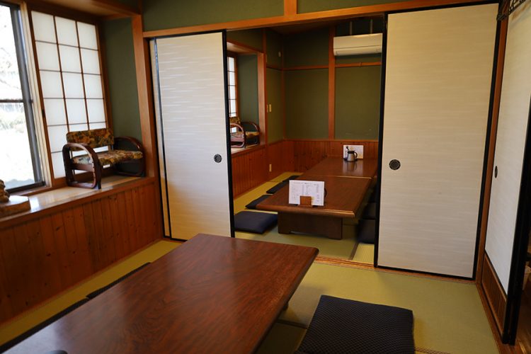 お座敷は、ふすまを開けて20名ほどの団体のお食事も可能。