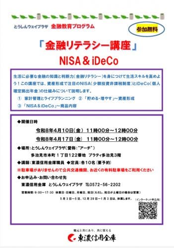 【とうしんウェイプラザ】金融教育プログラム「金融リテラシー講座」NISA & iDeCo