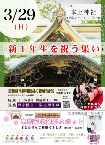 昨年大好評だった本土神社(岐阜県多治見市)での「新1年生を祝う集い」が今年も開催できる運びになりました。