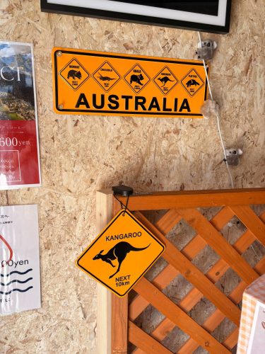 カンガルーの看板やコアラが描かれたトレーなど、店内にはオーストラリアを感じさせる雑貨が並びます。