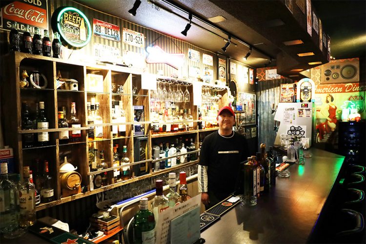 昼間は中央亭店主、夜はBAR PADDOCKのマスター花井有一朗さん(50)は以前からアメリカンな雑貨を集めるのが趣味。