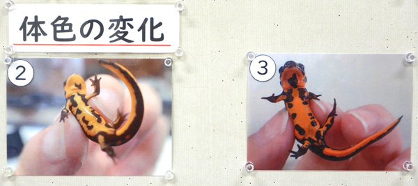 2年前に土岐川観察館で孵化したイモリの成長記録を展示します。