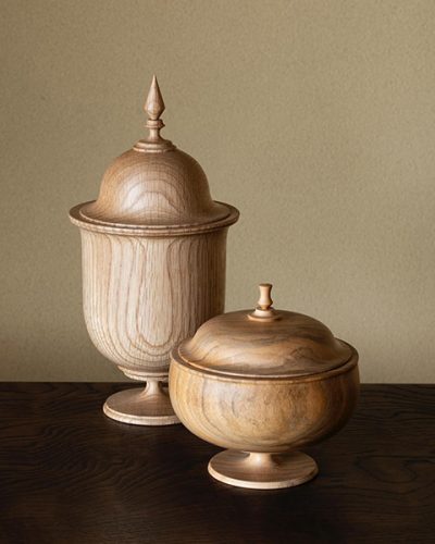 市川さんは、木が本来持っているテクスチャーを生かし、木工旋盤で削り出して制作されています。